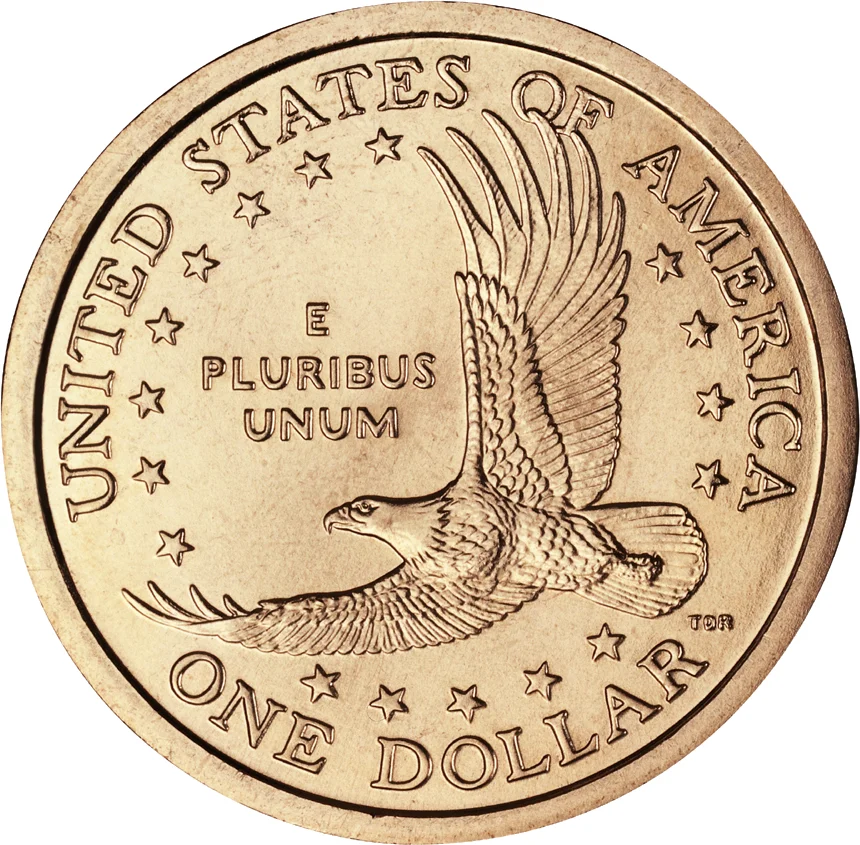 The Sacagawea dollar—often called the "golden dollar" for its distinctive manganese brass color—was introduced in 2000 to replace the Susan B. Anthony dollar that had been widely confused with the quarter. Designed by Glenna Goodacre, the obverse features Sacagawea, the Shoshone woman who helped guide the Lewis and Clark Expedition, carrying her infant son Jean Baptiste on her back. Artist Randy'L He-dow Teton, a modern Shoshone woman, served as the model—making her one of the few living people to appear on a U.S. coin.